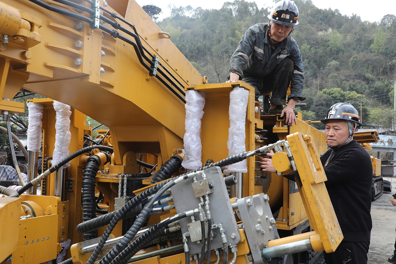 ¿ìËÙ¾ò½øÏµÍ³Ö÷ÒªÉ豸»Ø¿óºó£¬¾ò½øÒ»¶Ó°ü»ú×éµçǯ¹¤ºÍ³éµ÷µÄ°à×鳤·ÅÆúÖÜÄ©ÐÝÏ¢£¬×¥½ô½øÐÐÖØÐÍÉ豸Æðµõ×é×°£¬ÏȺó½«Ðü±Ûʽ¾ò½ø»úµÄ½Ø¸îϵͳ¡¢²ù°å¡¢ÂÄ´øÊ½ÐÐ×ß²¿¼þ¡¢²Ù¿ØÌ¨ºÍÊäËÍ×°ÖÃÒÀ´ÎÓë±¾ÌåÁ¬½Óµ½Î»£¬²¢½ÓͨҺ¹Ü¡¢Ó͹ܡ¢Ë®¹ÜºÍ¹©µçϵͳ£¬Í¬²½Íê³É³§¼Ò×é×°³ÉÐ͵Äê¸Ë×ªÔØ»ú×éµÄҺѹºÍ¹©µçϵͳÁ¬½Ó¡£