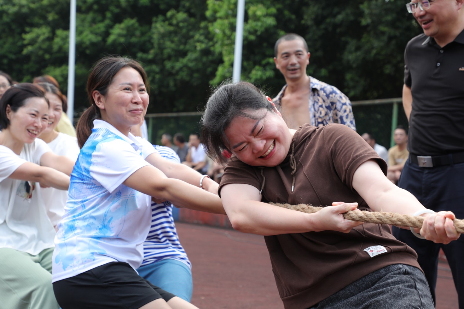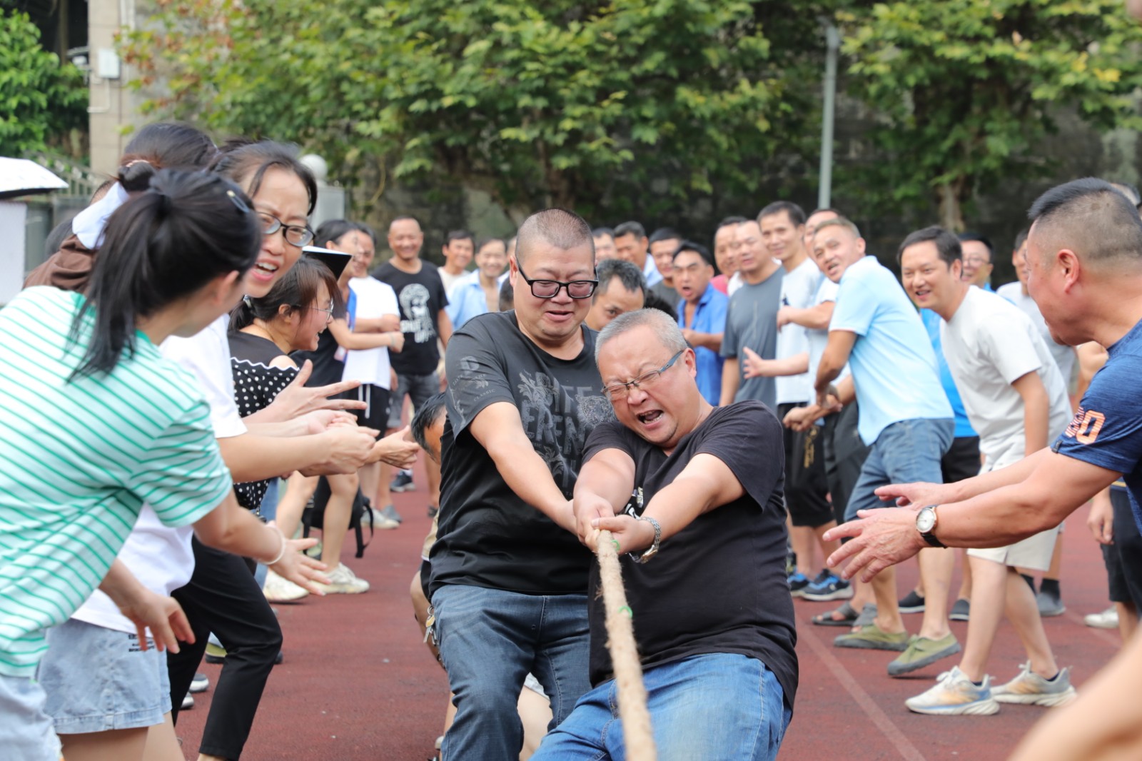 ÏÖ³¡²ÎÈüÄÐ×Ó×é12¸ö¶Ó£¬Å®×Ó×é4¸ö¶Ó£¬ÄÐ×Ó×é·Ö4¸ö×é½ÇÖð£¬Ð¡×éµÚÒ»Ãû³öÏߺó½øÐн»²æ½ÇÖð£»Å®×Ó×é½ÓÄɵ¥Ñ»·Èü£¬Ã¿³¡½ÇÖð¾ù½ÓÄÉÈý¾Ö¶þʤÈüÖÆ¡£½ÇÖðÉÐδ¿ªÊ¼£¬Ë«·½¾ÍÒѽøÈë¡°Õ½¶·¡±×´Ì¬£¬Ë«ÊÖ½ôÎÕÉþ×Ó£¬Ë«½ÅÓÃÁ¦×ŵأ¬ÉíÌåÏòºó΢Çã£¬Ëæ×ÅÒ»ÉùÉÚÏ죬¶ÓÔ±ÃǶ¼Ã×ãÁ˾¢ÍùºóÀ£¬±ïµÃÂúÁ³Í¨ºì£¬Öظ´Õù¶á£»ÂäºóÒ»¾ÖµÄ¶ÓÔ±ÔÚ½»»»Ô°µØºó´òÆø¹Ä¾¢£¬Ê¹³öÂúÉí½âÊý£¬ÊÆÔÚŤת¾ÖÃæ¡£ÕâÒѲ»ÊÇÒ»³¡¼òµ¥µÄÕ½¶ÓʵÁ¦Ö®¼äµÄ½ÏÁ¿£¬²ÎÈü¶ÓÔ±ÃdzмÌú¿ó¡°È¼ÉÕ¾«Éñ¡±£¬Í¨Á¦ÏàÖú£¬ÆëÐÄÐÁ¦£¬¸ö¸ö¾«Éñ¶¶ËÓ¡¢¶·Ö¾¸ß°º£¬ÀÀ¶ÓÔ±ºÍ¹ÛÖÚÃÇÐij±ÅìÅÈ£¬ÇéÐ÷¼¤ÑïµÄÖúÍþÄź°½«°ÎºÓ½ÇÖðÍÆÏòÁËÈȳ±¡£