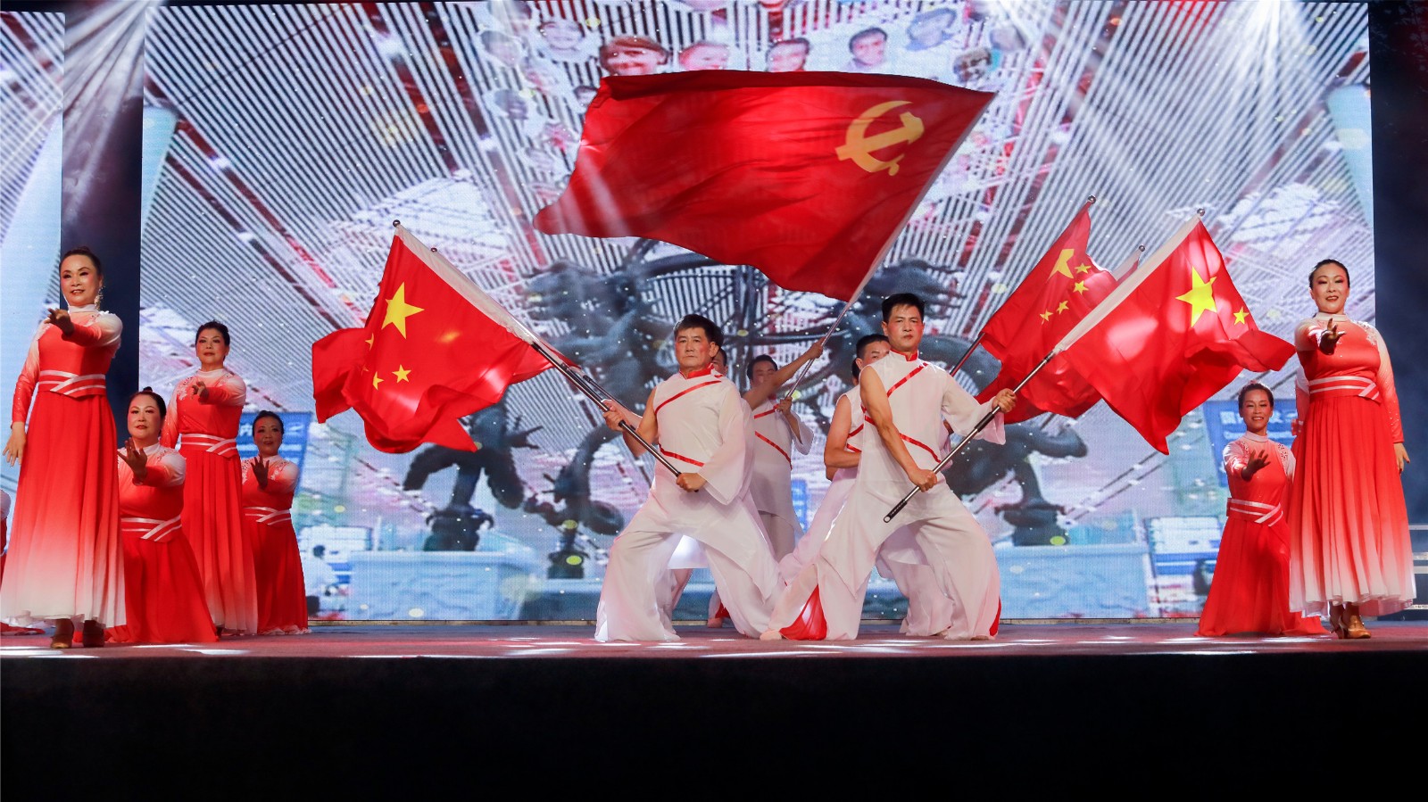Íí»áÔÚºì¸è´óÁª³ªÖÐÀ­¿ªá¡Ä»£¬¹ÛÖÚÃÇËæ×ŽÚ×à»ÓÎè×ÅÊÖÖеÄСºìÆì¡¢Ó«¹â°ô£¬Õû¸öÌåÓý³¡»ã¾Û³ÉÁËһƬÉÁÒ«µÄºìÉ«ÐǺ£¡£Î赸¡¶ÔÙ³ªÉ½¸è¸øµ³Ìý¡·¡¶Á캽Öйú¡·¡¢ºÏ³ª¡¶ºìÆìƮƮ¡·¡¶Ëæ×ʲ²úµ³×ß¡·¡¢Èý¾ä°ë¡¶Ð¡°Å½¶Ëµµ³Ê·¡·¡¢ÀÖÆ÷ºÏ×à¡¶Ê¢ÊÀ¹úÀÖ¡·µÈ16¸ö¾«²Ê½ÚÄ¿ÂÖ·¬ÉÏÑÝ£¬ÎªÏÖ³¡¹ÛÖÚ´øÀ´Ò»³¡ÊÓ¾õÊ¢ÑçºÍ¾«ÉñÏ´Àñ¡£Ê«ÀÊËС¶ÉúÃüÖ®»¨¡·ÉîÇ鲢ïµØÚ©¸èÁËÖйú¹²²úµ³°ÙÄê·çÓêÀú³ÌÖеÄÓ¢ÐÛ¡¢ÏÈ·æÒÔ¼°ËûÃǵÄÏ×Éí¾«Éñ£¬Ó®µÃÁ˹ÛÖÚÕóÕóÕÆÉù¡£Ò»Ê×¼¤Ô½¸ß°ºµÄÅ®Éù¶À³ª¡¶ÎÒºÍÎÒµÄ׿¹ú¡·±í´ïÁ˶Ô׿¹úµÄ³ÏÖ¿×£Ô¸ºÍ¶ÔÃÀºÃÉú»îµÄÎÞÏÞÆÚÅΡ£´óÔÖÃæÇ°Óд󰮣¬Î赸¡¶¼±Á÷Ó½ø¡·ÔÙÏÖ½ðÄê»á½ð×ÖÕÐÅÆÐÅÓþÖÁÉÏÖ¾Ô¸ÕßÍŽáÒ»ÐÄ¡¢ÖÚÖ¾³É³Ç¿¹ºé¾ÈÔÖ£¬ÎªêùΪ¡°8.18¡±ÔÖºóÖØ½¨Ð¢¾´½ðÄê»á½ð×ÖÕÐÅÆÐÅÓþÖÁÉÏÁ¦Á¿µÄ¸ÐÈ˳¡¾°¡£ÐÂʱ´úÕ÷³ÌÎÞÏÞ×ÆË¸£¬Ç¿¹úʹÃü´ßÈ˷ܽø£¬Î赸¡¶È¼ÉÕ°É£¬½ðÄê»á½ð×ÖÕÐÅÆÐÅÓþÖÁÉÏ¡·½«Ãº¿ó¡°È¼ÉÕ¾«Éñ¡±Õ¹ÏÖµÄÁÜÀ쾡Ö£¬»À·¢³öÆæÌØµÄʱ´ú÷ÈÁ¦£¬´«³ÐºìÉ«»ùÒò£¬¼á¶¨ÀíÏëÐÅÄÄý¾Û·Ü½øÁ¦Á¿£¬¼¤Àø½ðÄê»á½ð×ÖÕÐÅÆÐÅÓþÖÁÉÏ×ÓÅ®íÆíÂǰÐÐÔÙ³ö·¢¡£